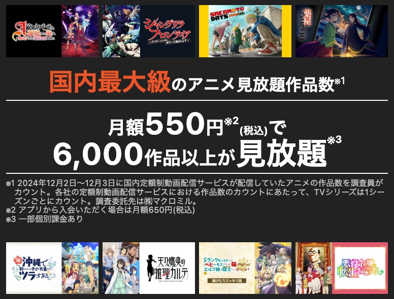1. アニメ6,000作品の圧倒的ラインナップ!