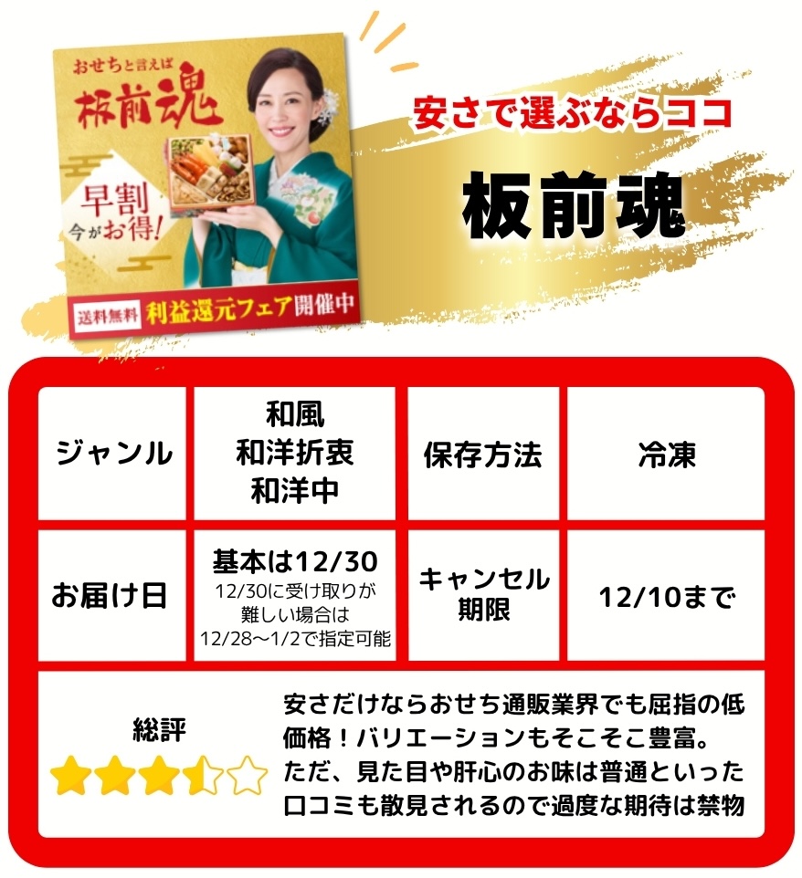 自社製造で種類豊富! リーズナブルな おせち通販の定番。 »詳しい解説はこちら |